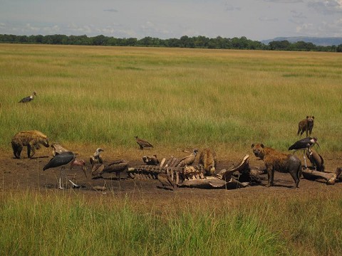 end of our day, we came across an elephant carcass surrounded by hyenas,