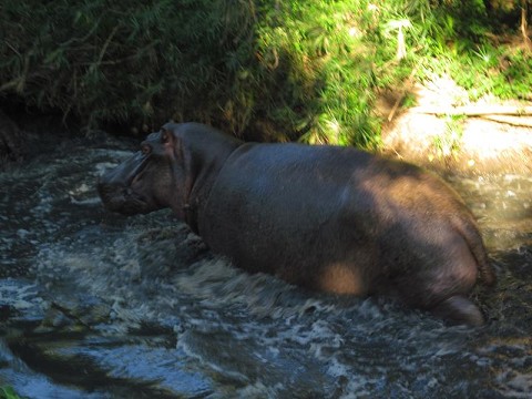 single hippo close up, we finally had success!! They were just chilling in the water, dipping their heads in and out,